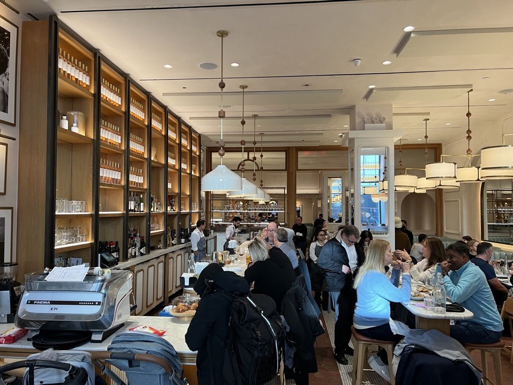 이 레스토랑은 뉴욕 전역에 여러 지점을 운영하고 있지만, 특히 브라이언트파크점(20 W 40th St) 은 도시 한복판의 리듬과 감성을 모두 담고 있다. 아침엔 출근길 커피와 브리오슈로 시작해, 점심엔 신선한 파스타와 샐러드, 저녁엔 와인과 칵테일로 마무리되는 ‘올데이 다이닝’의 대표 주자다.