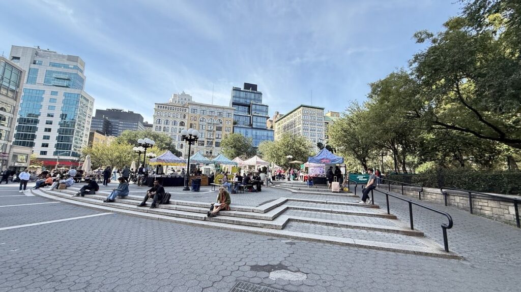 최근에는 테크 기업, 스타트업, 디자인 스튜디오, 교육기관 등이 잇따라 유입되면서 이 지역은 ‘창작·기술·학습’의 허브로도 자리 잡았다. 뉴 스쿨(The New School), 파슨스 디자인 스쿨(Parsons), 뉴욕대 건물들이 가까워 많은 학생들이 이곳을 일상의 중심지로 사용한다. 거리에서 스케치북을 펼쳐 놓고 그림을 그리는 학생, 코드를 작성하는 젊은 개발자, 혹은 책을 읽으며 일몰을 기다리는 시민들까지—유니온 스퀘어는 언제나 다양한 목적을 가진 사람들이 모이는 교차점이다.