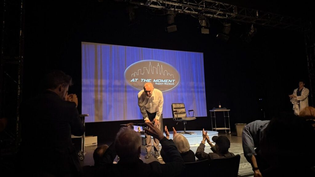그러나 작품의 한계도 명확하다. 무엇보다 머독이라는 거대한 인물을 90분, 그것도 1인극 형식으로 압축하려는 시도는 필연적으로 서사적 공백을 남긴다. 그의 삶은 비판과 찬사가 공존하는 복잡한 스펙트럼 안에 있지만, 이 공연은 그 폭을 충분히 담아내기보다 풍자적 어조에 비중을 두고 있다. 그 결과 언론 권력 구조나 정치적 유착 문제에 대한 분석은 아쉽게도 얕아지고, 장면 전환은 종종 산만해진다. 폭스뉴스와 보수 정치의 공조 같은 역사적 논란들은 언급되지만, 깊이 있는 탐구로 이어지지 않아 ‘비판은 강하지만 설득력은 약하다’는 인상을 남긴다.