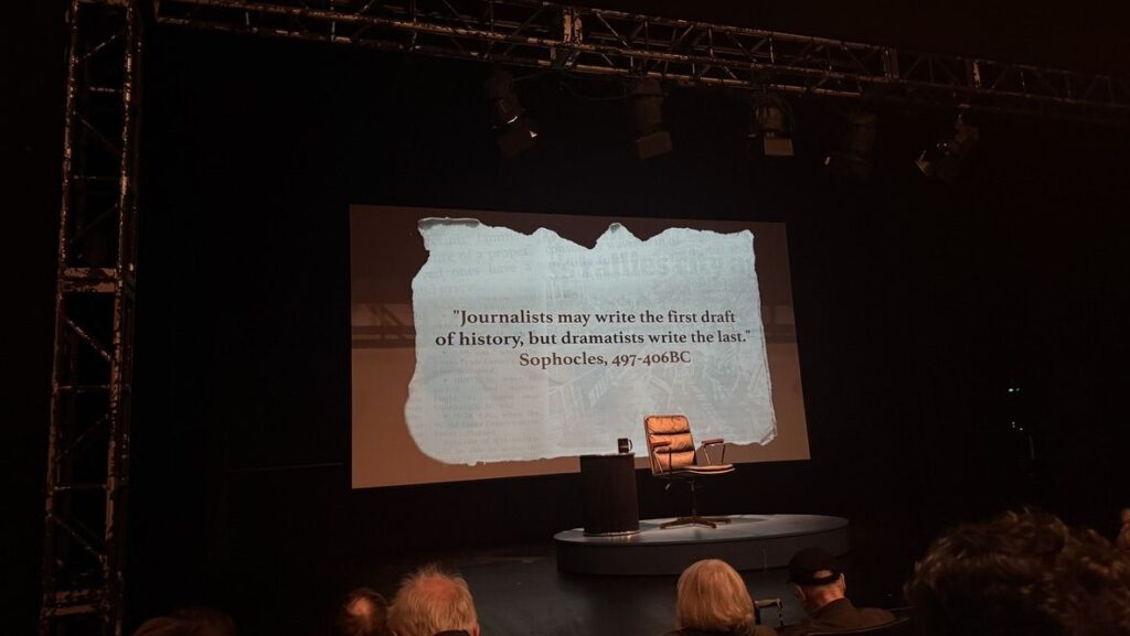 결국 이 작품은 완벽하진 않지만, 지금 반드시 필요한 이야기이기도 하다. 제이미 잭슨의 뛰어난 1인 연기, 매체적 기법을 활용한 연출, 그리고 언론 권력에 대한 문제 제기 등은 공연의 완성도를 뒷받침한다. 깊이 면에서는 아쉬움이 있지만, 관객에게 던지는 질문은 결코 가볍지 않다. 미디어와 권력, 진실의 경계에 관심이 있는 관객이라면 한 번쯤 볼 만한, 시대적 의미가 분명한 작품이다.