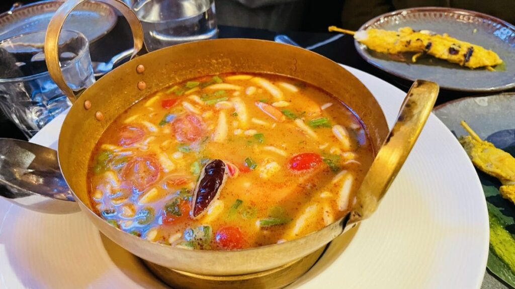 수프류는 식사의 리듬을 바꾼다. 똠얌은 산미와 매운맛의 대비가 명확하되, 혀를 압도하지 않는다. 똠카는 코코넛 밀크의 부드러움 속에 레몬그라스의 향이 깔끔하게 살아 있다. 이 수프들은 단독으로도 완결성을 갖지만, 메인 요리 사이의 휴지처럼 기능한다. 한 숟갈을 뜨면 입안의 잔향이 정리되고, 다음 요리를 받아들일 준비가 된다.