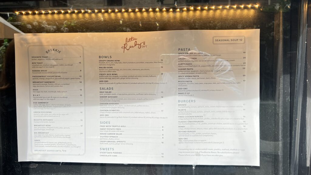 Little Rubis의 메뉴는 단출하다. 요즘 뉴욕의 카페들이 보여주는 끝없는 시그니처 음료나 복잡한 설명은 찾아보기 어렵다. 샌드위치 몇 가지와 에스프레소 중심의 기본적인 커피 메뉴. 이 단순함은 결핍이 아니라 선택의 결과다.