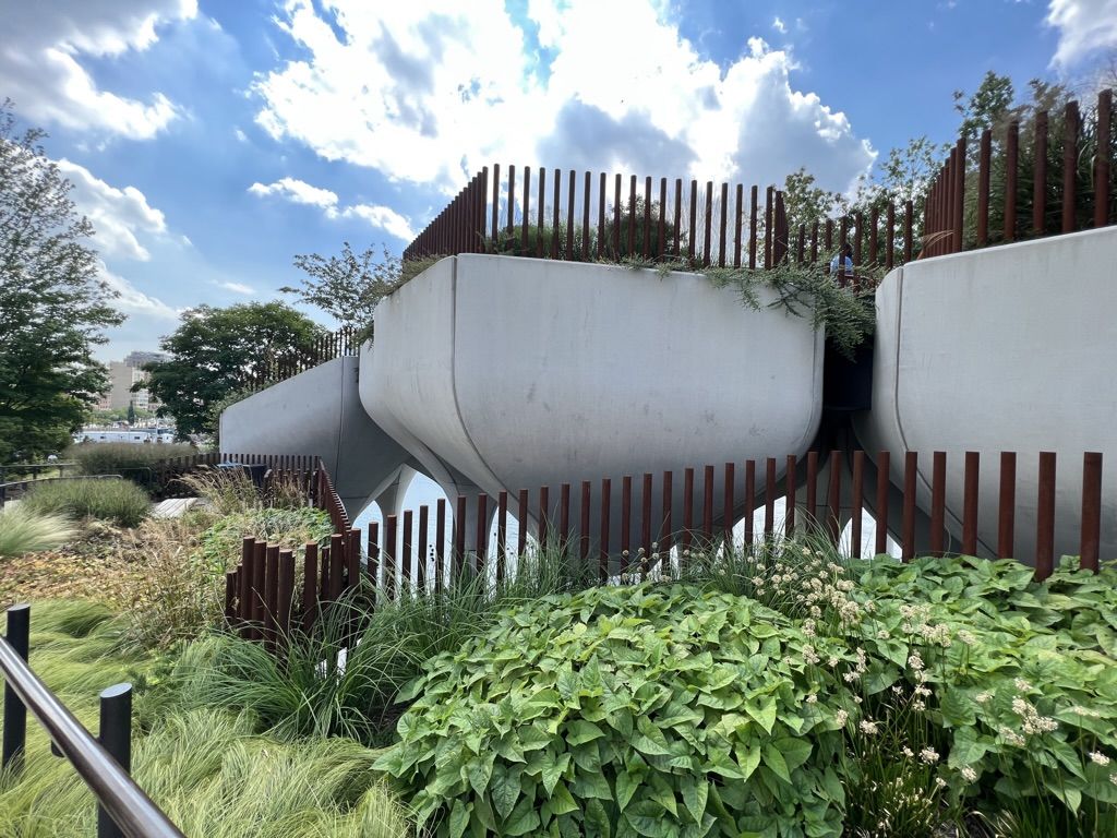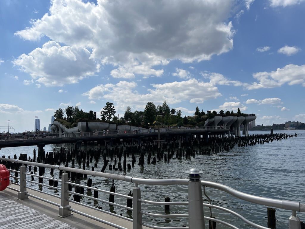 리틀 아일랜드는 132개의 콘크리트 기둥 위에 세워져 있다. 각 기둥은 높낮이가 달라 마치 물결이 굳어진 듯한 형상을 이루고, 그 위로 조경된 언덕이 부드럽게 이어진다. 영국의 디자이너 토머스 헤더윅(Thomas Heatherwick)이 설계한 이 구조물은 ‘떠 있는 공원’이라는 개념을 시각화했다. 바람은 강 위에서 불어오고, 발 아래로는 물소리가 들리며, 멀리 보이는 맨해튼의 스카이라인은 이 공간이 도시의 일부이자 그 반대편임을 증명한다. 걷는 방향에 따라 시야가 끊임없이 변하고, 시점이 달라질 때마다 공원은 전혀 다른 풍경을 보여준다.