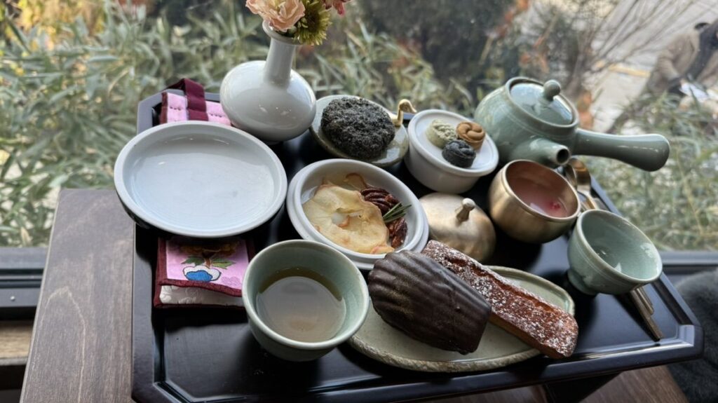 프롬아주 케이크와 전통 디저트 세트는 특히 한국적인 색채가 뚜렷하다. 프롬아주는 치즈 기반 디저트지만, 여기에 인절미나 말차 같은 한국적인 재료가 더해진다. 전통 디저트 세트에는 다식과 약과, 정과 같은 한식 디저트가 현대적인 플레이팅으로 제공된다. 이는 단순히 향수를 불러일으키는 메뉴가 아니라, 전통과 현대가 동시에 공존할 수 있음을 보여준다.