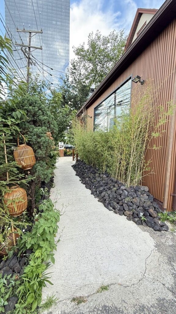 청수당에 들어서는 순간 가장 먼저 시선을 사로잡는 것은 공간 디자인이다. 외관은 전통 한옥을 현대적으로 해석한 듯한 간결함을 지녔고, 내부는 마치 서울 종로 익선동의 좁은 골목길 한옥 카페를 옮겨놓은 듯한 분위기를 풍긴다. 나무 격자와 따스한 색조의 벽, 현무암 장식이 어우러져 뉴저지의 일상적인 풍경 속에서 전혀 다른 시·공간을 경험하는 기분을 준다.