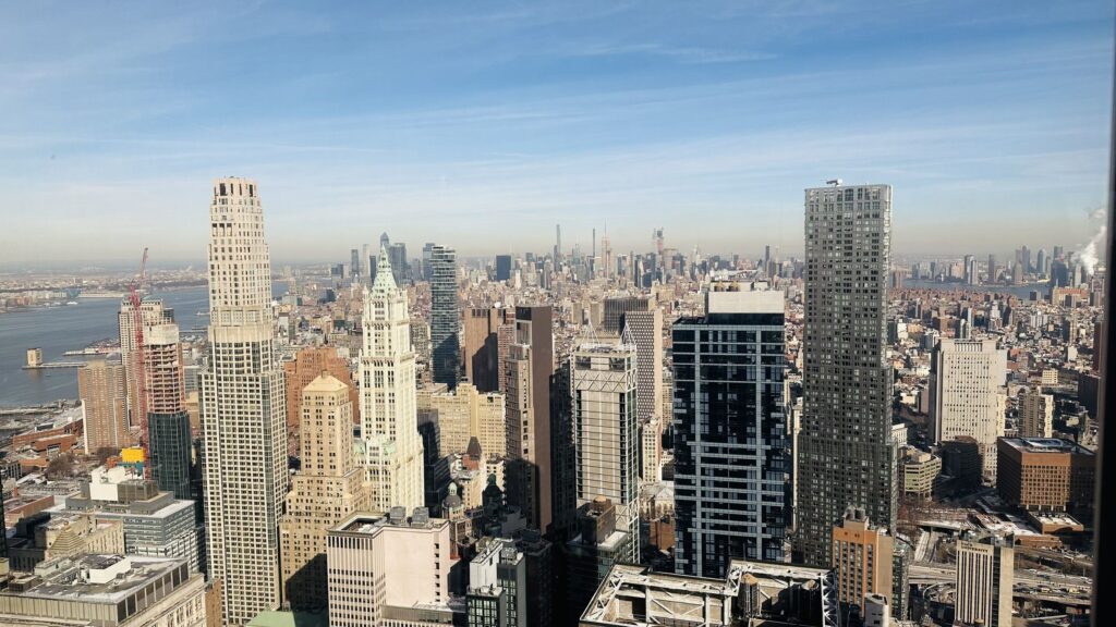 엘리베이터를 타고 60층에 도달한 순간 펼쳐지는 뉴욕의 전경은 단순한 전망을 넘어선다. 남쪽으로는 자유의 여신상과 스태튼 아일랜드가, 북동쪽으로는 브루클린 브리지와 퀸즈보로 다리가, 서쪽으로는 저 멀리 뉴저지의 경계선이 보인다. 창가 좌석에 앉아 있으면 마치 도시 위에 떠 있는 듯한 착각마저 든다. 특히 해질 무렵부터 저녁 시간이 황금 시간대로 꼽힌다.