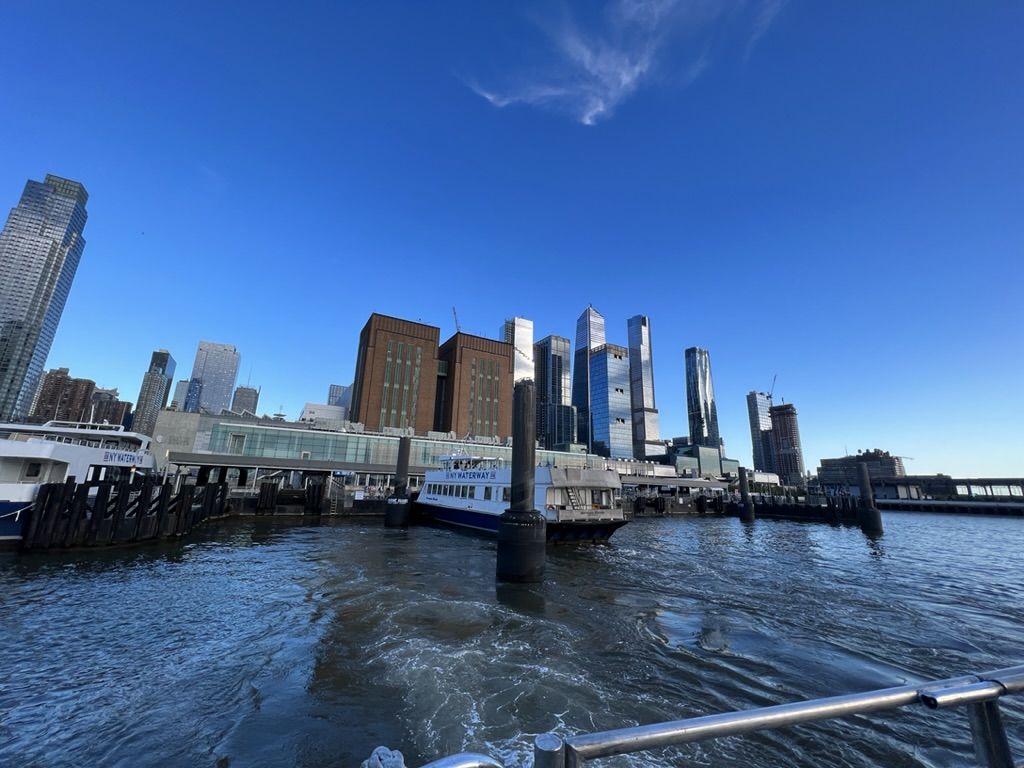 가장 짧은 항로는 단 8분 만에 맨해튼에 닿는다. 하지만 짧은 그 시간 동안에도 강 위에서 마주하는 풍경은 길고 깊게 남는다. 배가 출항하는 순간, 뉴저지의 붉은 벽돌 건물들이 멀어지고, 맨해튼의 유리탑들이 서서히 시야를 채운다. 자유의 여신상은 멀리 수평선 너머로 고개를 내밀고, 브루클린브리지의 아치가 물안개 너머로 희미하게 드러난다. 흔히 보는 엠파이어스테이트 빌딩조차도, 강 위에서 바라보면 전혀 다른 표정을 짓는다. 바쁜 도심의 소음이 멀어질수록, 뉴욕은 오히려 더 선명하게 보인다.