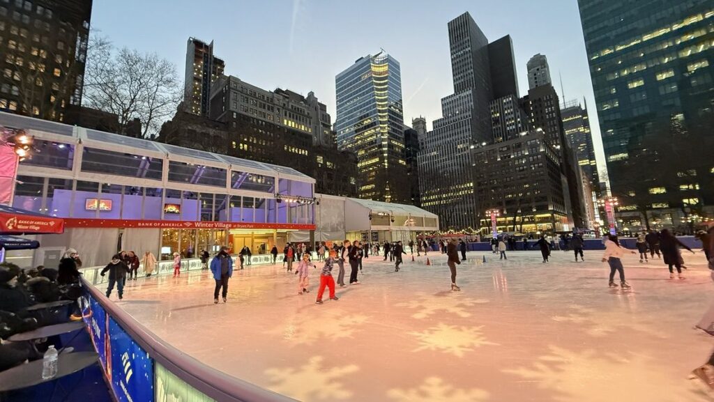 겨울이면 광장은 ‘더 폰드(The Rink)’ 아이스 스케이트장으로 변신한다. 무료 입장이 가능한 이 스케이트장은 뉴욕 겨울의 명소로, 록펠러 센터 못지않은 인기를 끈다. 주변에는 홀리데이 마켓이 들어서 크리스마스 분위기를 한층 고조시킨다.