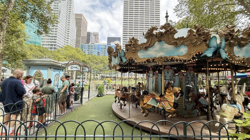 넓은 잔디 위에서 책을 읽는 뉴요커, 아이와 함께 회전목마를 타는 가족, 겨울 밤 스케이트를 즐기는 연인, 그리고 도서관 계단에 앉아 햇살을 만끽하는 여행자. 이 모든 장면이 한데 모여 브라이언트 파크는 단순한 공원을 넘어 뉴욕의 일상과 꿈이 교차하는 무대가 되었다.