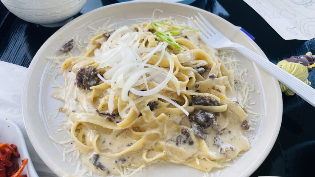 가장 많이 회자되는 메뉴 중 하나는 불고기 크림 파스타다. 전통 불고기의 단맛과 감칠맛을 이탈리아식 크림 소스에 녹여낸 이 메뉴는 한국인 손님들에게는 익숙하면서도 색다른 경험을 선사한다. 미국 현지인들에게도 “한국적 풍미가 가미된 파스타”라는 매력으로 다가가며, 마당을 대표하는 시그니처 메뉴로 자리잡았다. 실제로 많은 고객 리뷰에서 이 메뉴는 “달콤하면서도 짭짤하고, 고소함까지 더해진 독창적인 아이디어”라는 호평을 받고 있다.