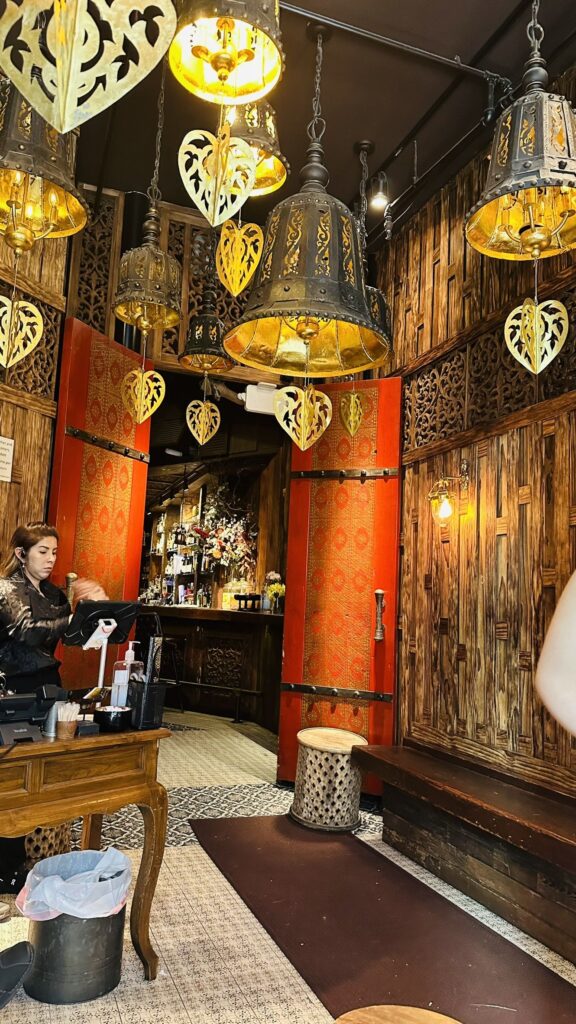 Thai Villa의 또 다른 매력은 공간이다. 내부 인테리어는 태국 전통 양식을 현대적으로 재해석했다. 어둡고 따뜻한 조명, 촛불 같은 램프, 금빛 패턴의 벽면 장식은 동양의 고요함을 불러일으킨다. The Infatuation은 Thai Villa를 “마치 꿈속의 사원 같은 레스토랑(dreamlike temple-like space)”이라 표현했다. 공간이 단순히 음식의 배경이 아니라, 감각의 일부로 작용한다는 점에서 이 레스토랑은 뉴욕의 ‘경험형 다이닝’ 트렌드와도 맞닿아 있다.